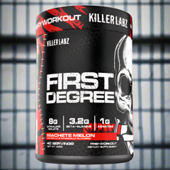 "Killer Labz most loaded pre-workout to date" "Stacked with stimulants" "An absolutely loaded supplement" "Brimming with high doses of killer ingredients fueling pumps, energy, endurance, performance, and focus, First Degree turns you into workout killing machine ..." labs DMHA